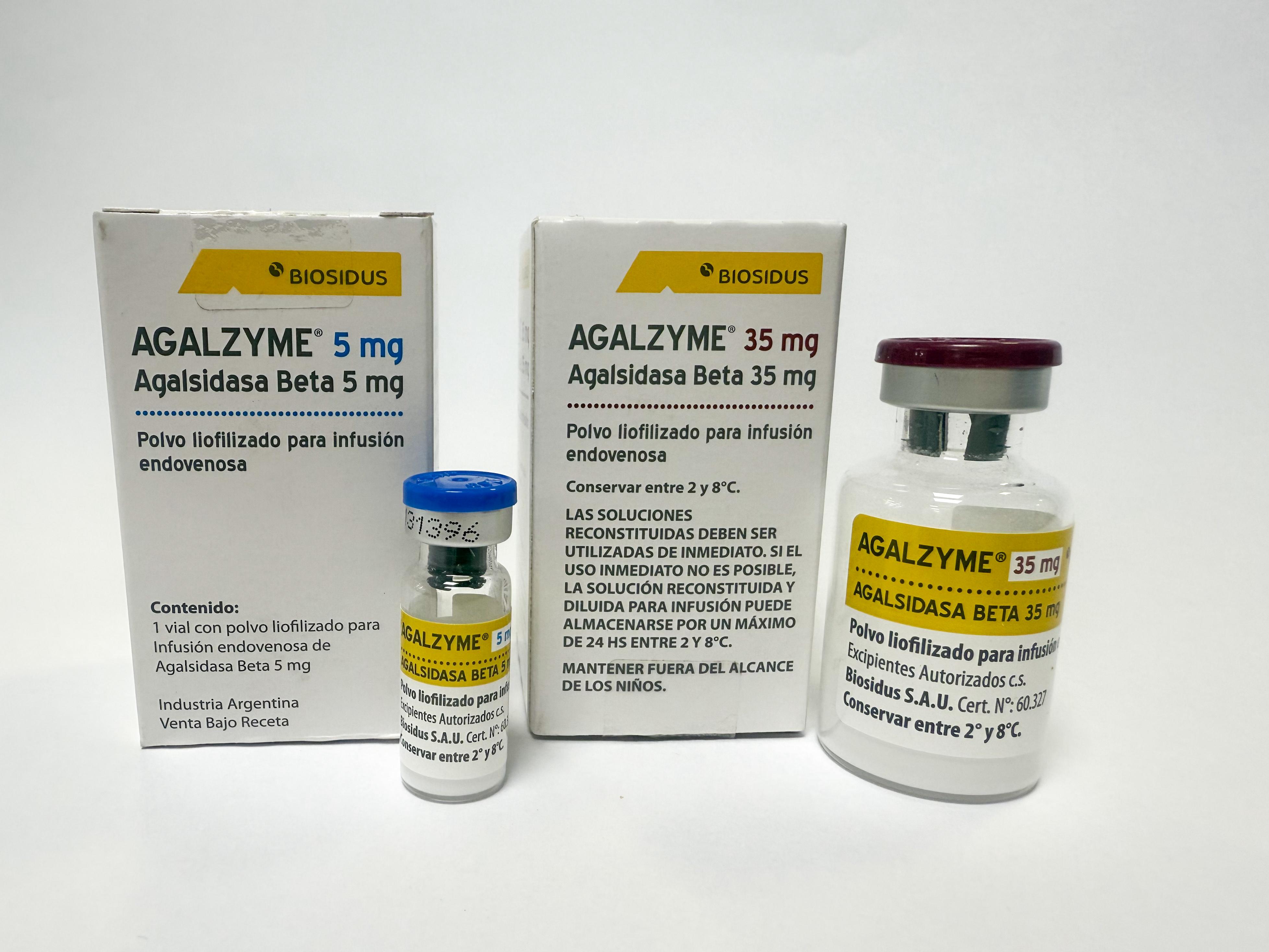 Agalsidasa beta 35 mg: Envase con 1 vial con polvo liofilizado para infusión endovenosa.