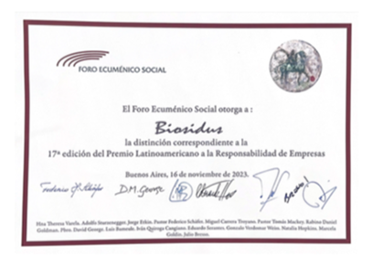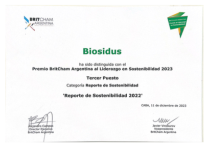BIOSIDUS tiene certificado su sistema de gestión Ambiental por IRAM según norma IRAM-ISO 14001:2015 con número de registro 14000-2122